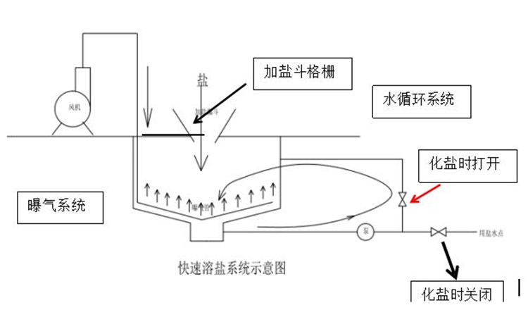 通?;}系統(tǒng)是僅采用水泵循環(huán)方式溶鹽,這種溶鹽方式有以下缺陷: (1) 化鹽時(shí)間長(zhǎng)(溶鹽時(shí)間要10小時(shí)以上) (2) 長(zhǎng)時(shí)間運(yùn)行后池底有大量的污泥沉…